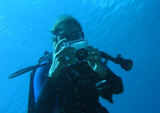 When shooting Macro, immobility is also of the essence. However, point and shoot cameras require you to be very close from your subject to shoot in macro mode (2-4 inches) so chances are you can stabilize your camera on a rock or stabilize yourself on the reef. If you're shooting macros of floating stuff such as a jellyfish, you will need to have a perfect buoyancy control as you want both your picture to come out great as well as avoiding those deadly tentacles (I'm sure that's not the exact term for jellyfishes but hey, I'm no Dr Bill.)